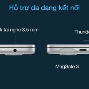 MacBook Air M2 2022 sở hữu đầu sạc MagSafe tương tự như MacBook Pro 14 và 16, cho phép mình sạc mà không lo vấp phải dây cáp khiến máy tính rơi xuống sàn. Nhờ có cổng MagSafe mà mình thực sự có thêm một cổng USB-C so với các kiểu máy cũ. Thay vì phải sử dụng một cổng để sạc máy tính và cổng còn lại cho thiết bị ngoại vi, giờ đây mình có thể sử dụng cả hai cổng hỗ trợ Thunderbolt cho các phụ kiện.